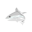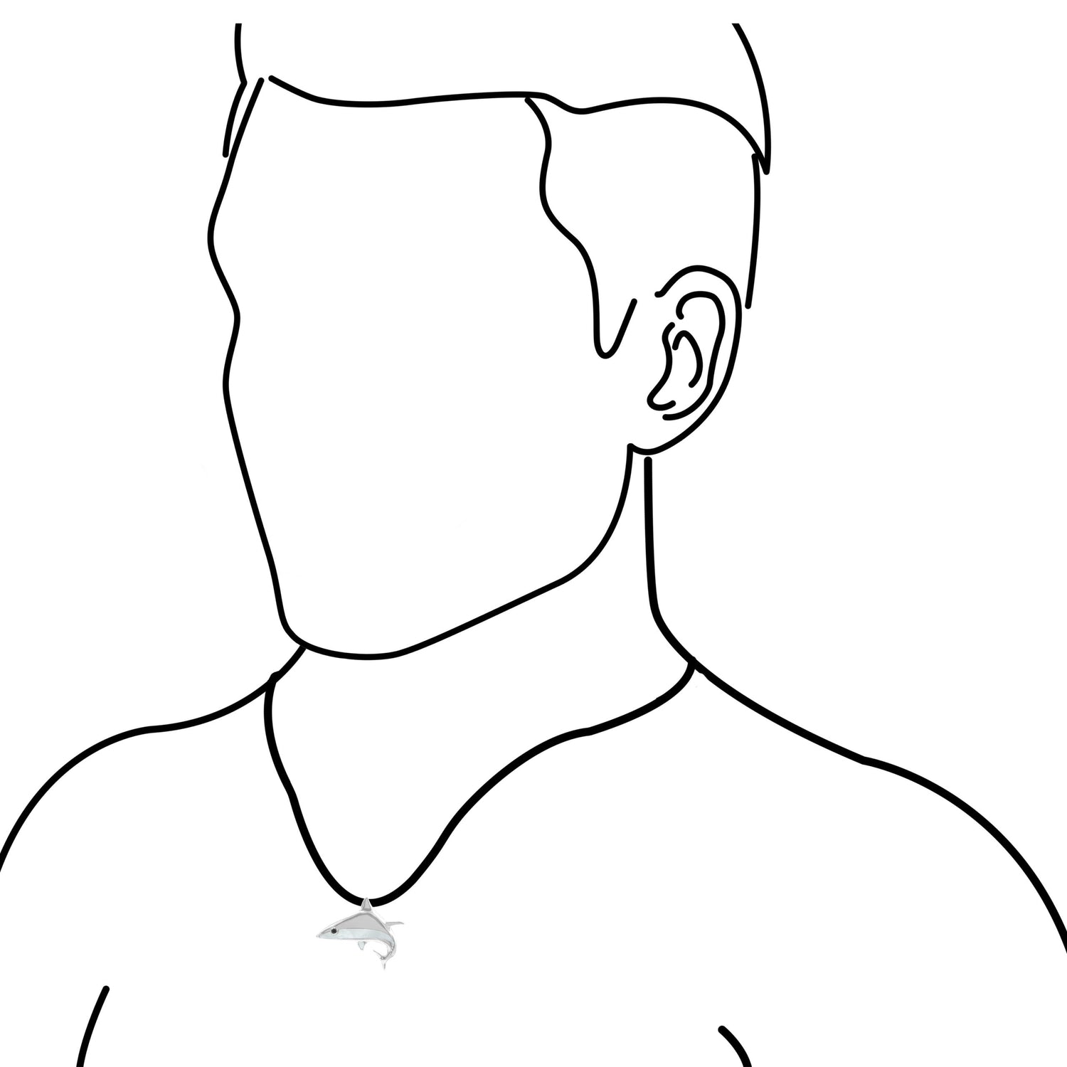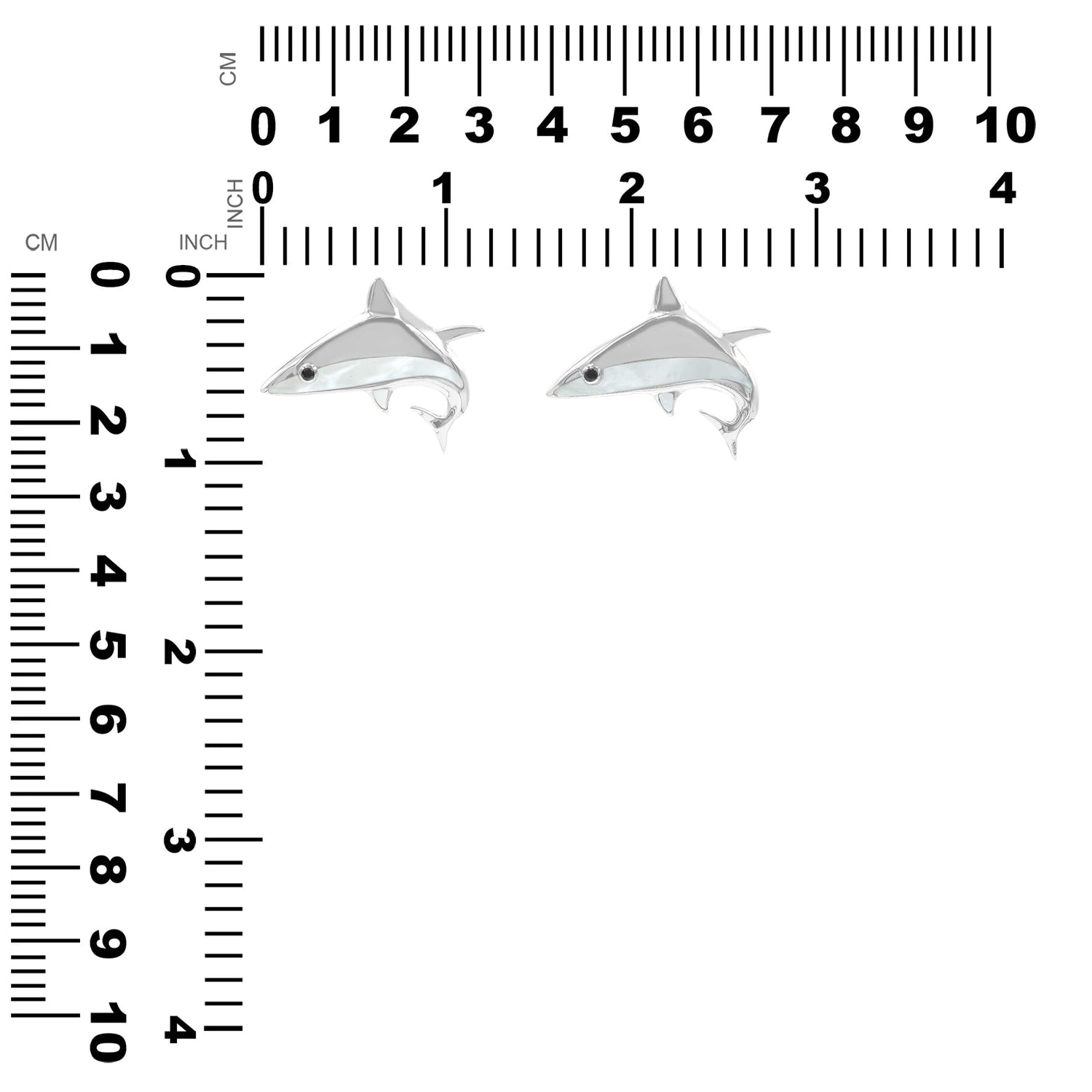 - Striking and ocean-inspired, this Shark Pendant is handcrafted in Fine Sterling Silver with genuine Mother of Pearl hand-inlay and small Black Spinel eyes. Finished with a hidden bale for a seamless look. Measures approx. 1" tall by 1.2" wide, (2.5 cm by 3.0 cm).